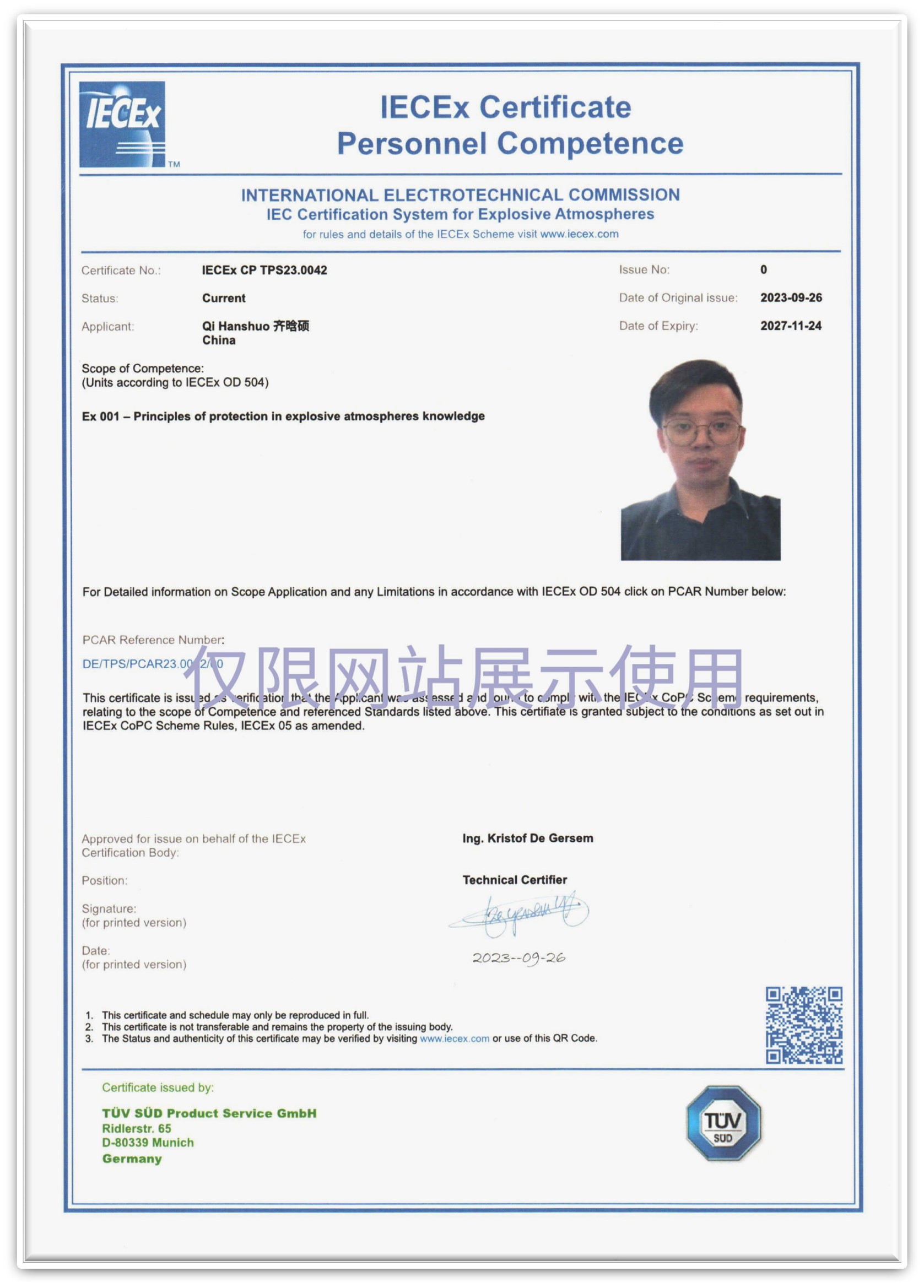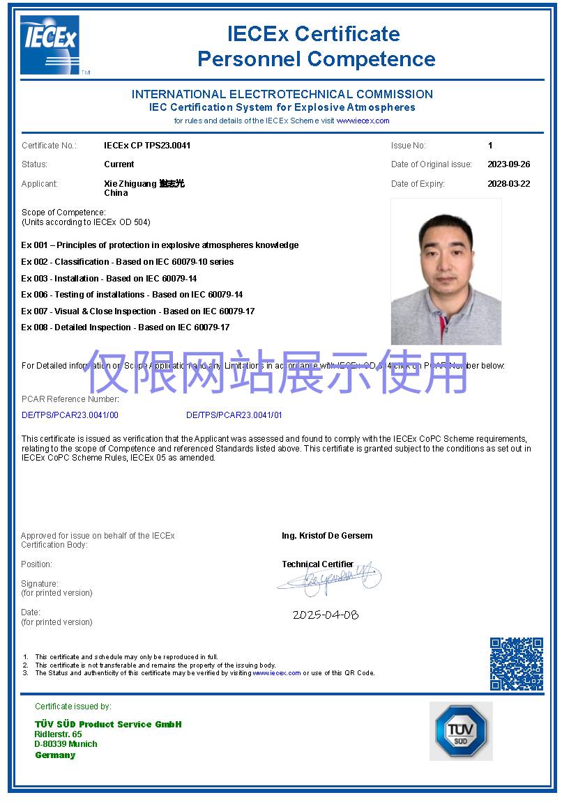 Explosion proof certificate